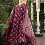 Cotton Calf Length Printed Flared 3/4 Sleeves V-Neck Kurta Suit Set With Dupatta (Preorder)