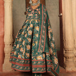 Cotton Calf Length Printed Flared 3/4 Sleeves V-Neck Kurta Suit Set With Dupatta (Preorder)