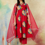 Rayon Calf Length Printed A-Line3/4 Sleeves V-Neck Kurta Suit Set With Dupatta (Preorder)