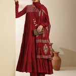 Cotton Calf Length Printed Full Sleeve Key Hole Neck Tired Kurta Bottom With Dupatta (Preorder)