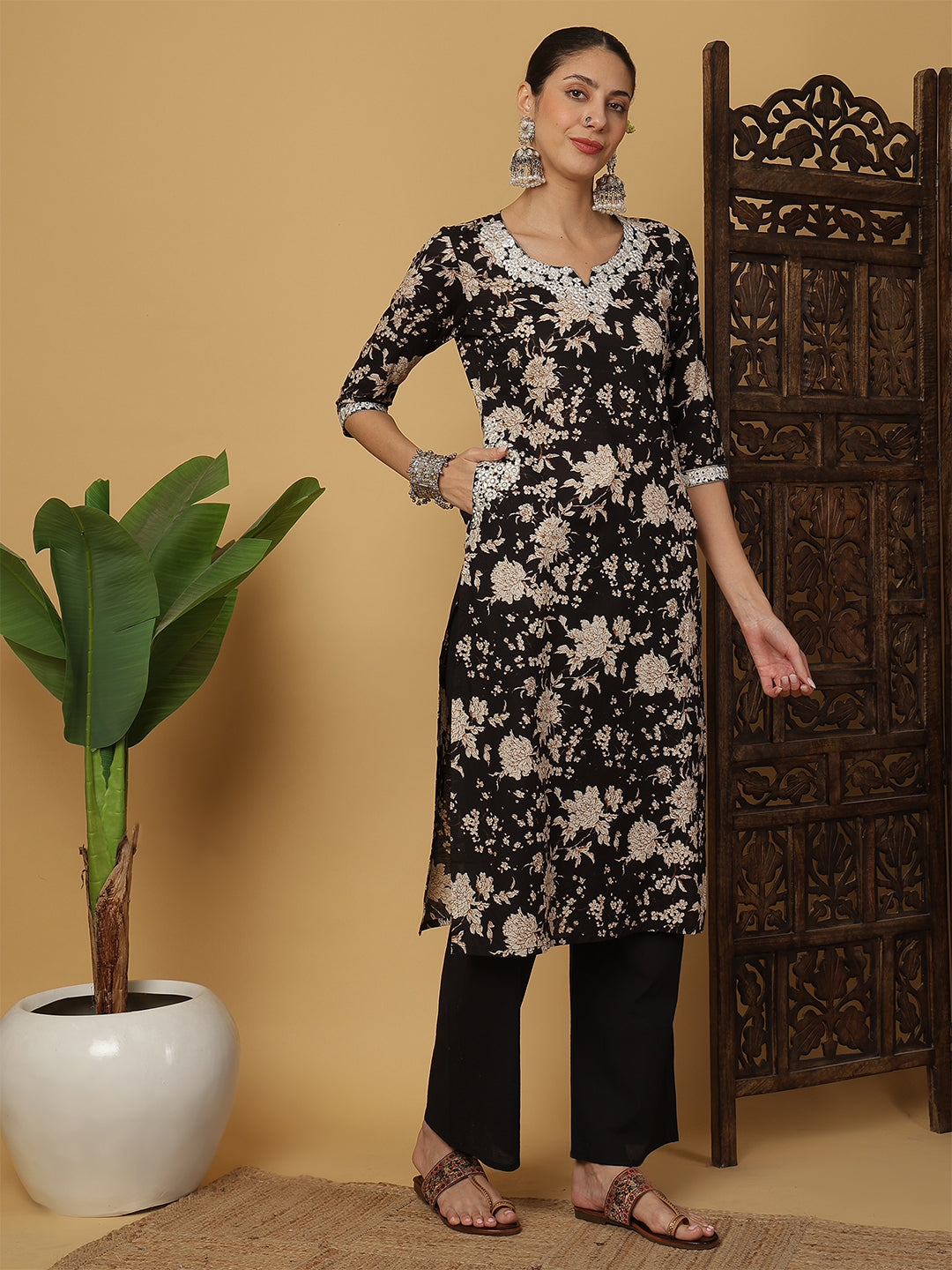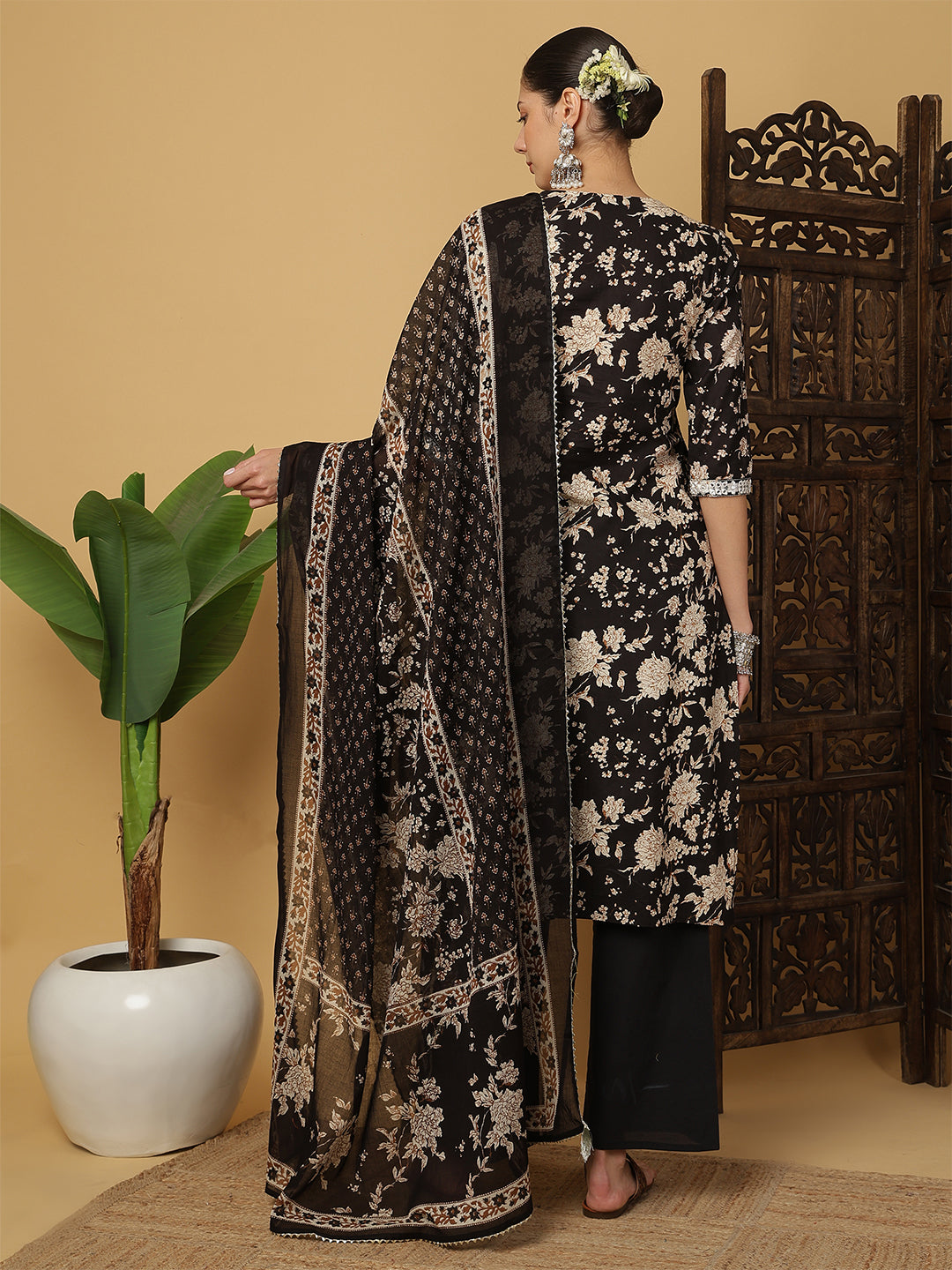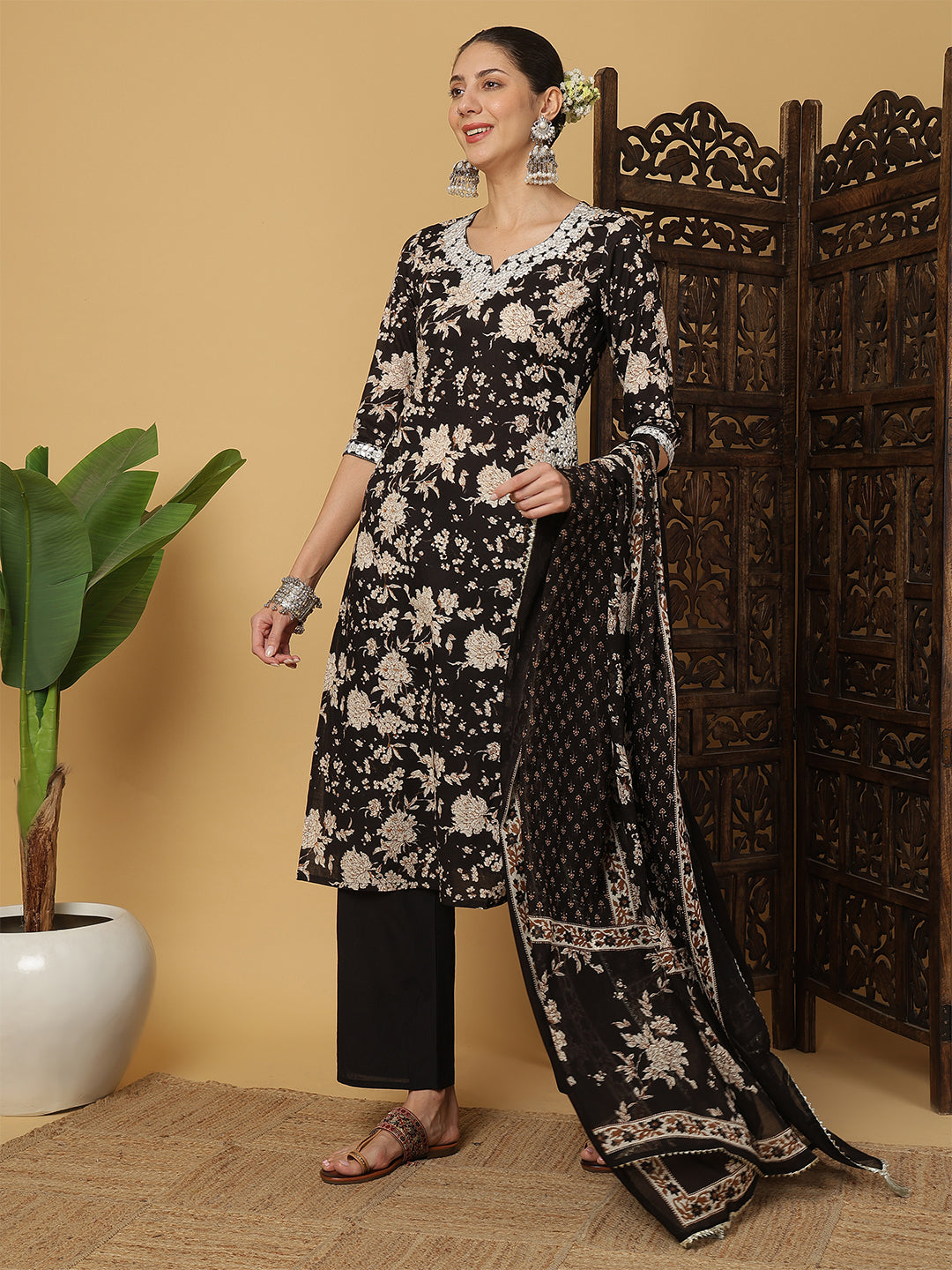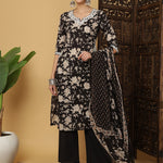 Cotton Calf Length Printed 3/4 Sleeves Round Neck Anarkali Kurta Bottom With Dupatta (Preorder)
