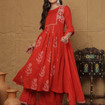Rayon Calf Length Printed 3/4 Sleeves Round Neck Semi-Flared Kurta Bottom With Dupatta (Preorder)