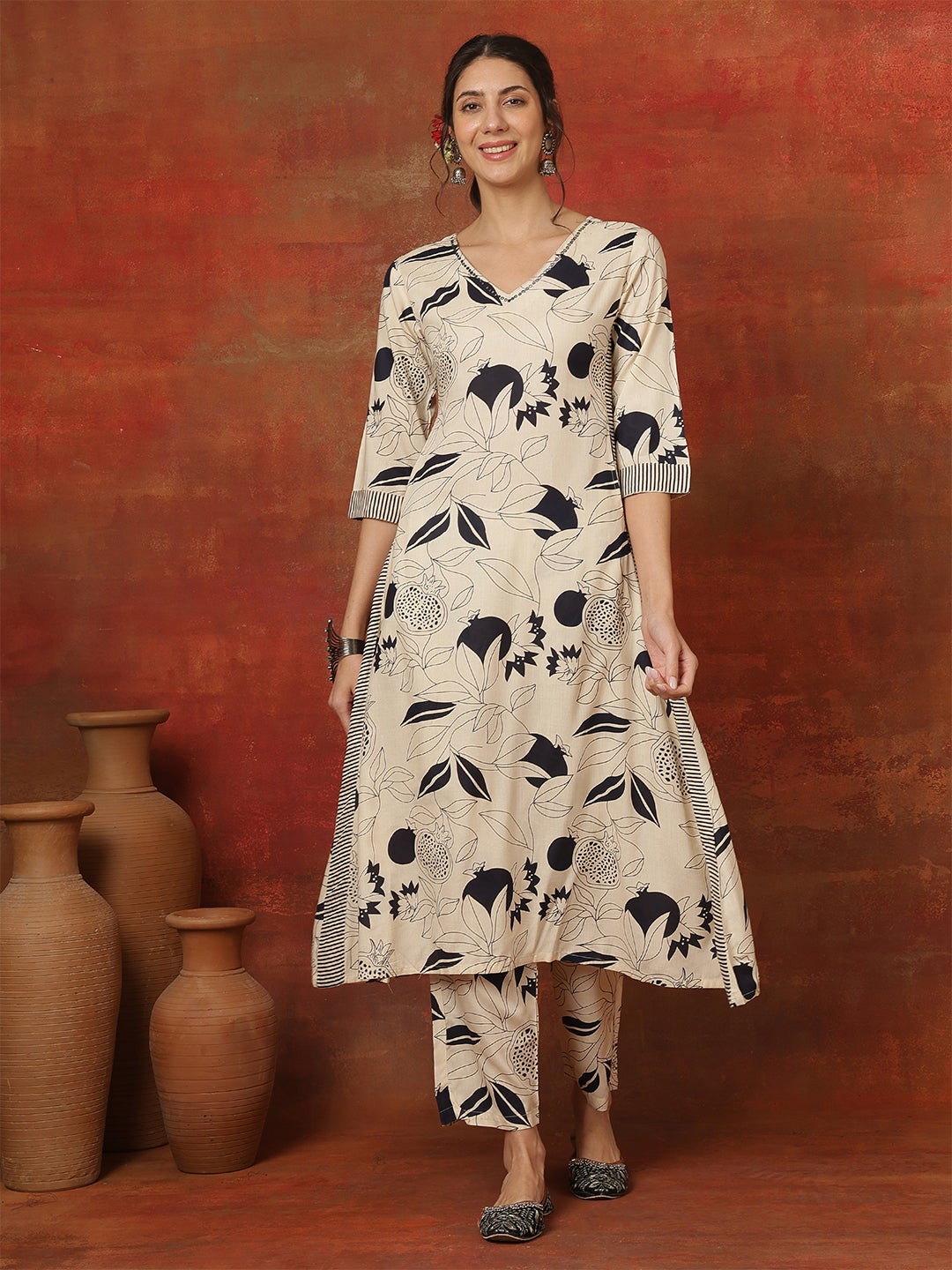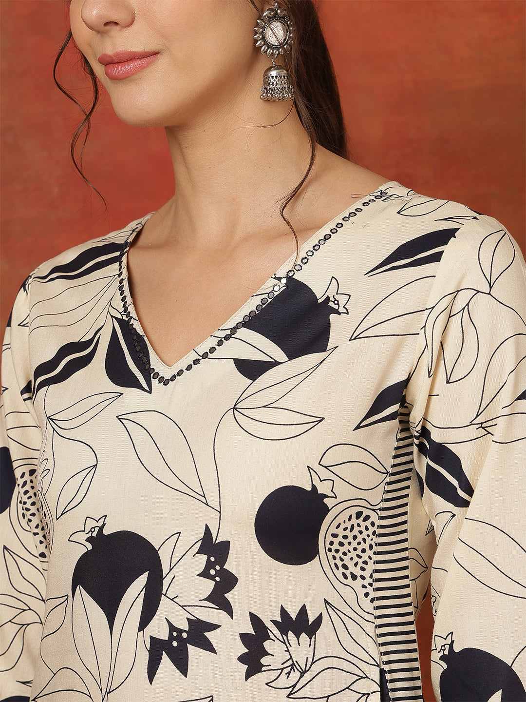 Rayon Calf Length Printed 3/4 Sleeves V-Neck Straight Kurta Suit Set (Preorder)