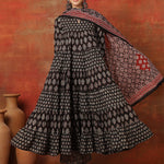 Cotton Ankle Length Printed 3/4 Sleeves Round Neck Full Flared Kurta Bottom With Dupatta (Preorder)