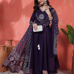 Rayon Calf Length Solid 3/4 Sleeves V-Neck Semi-Flared Kurta Suit Set With Dupatta (Preorder)
