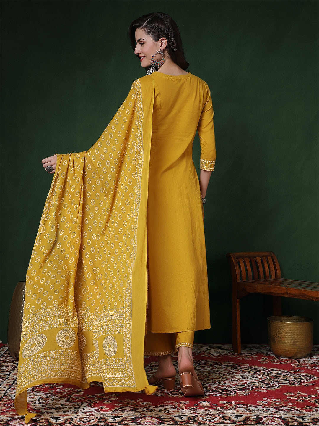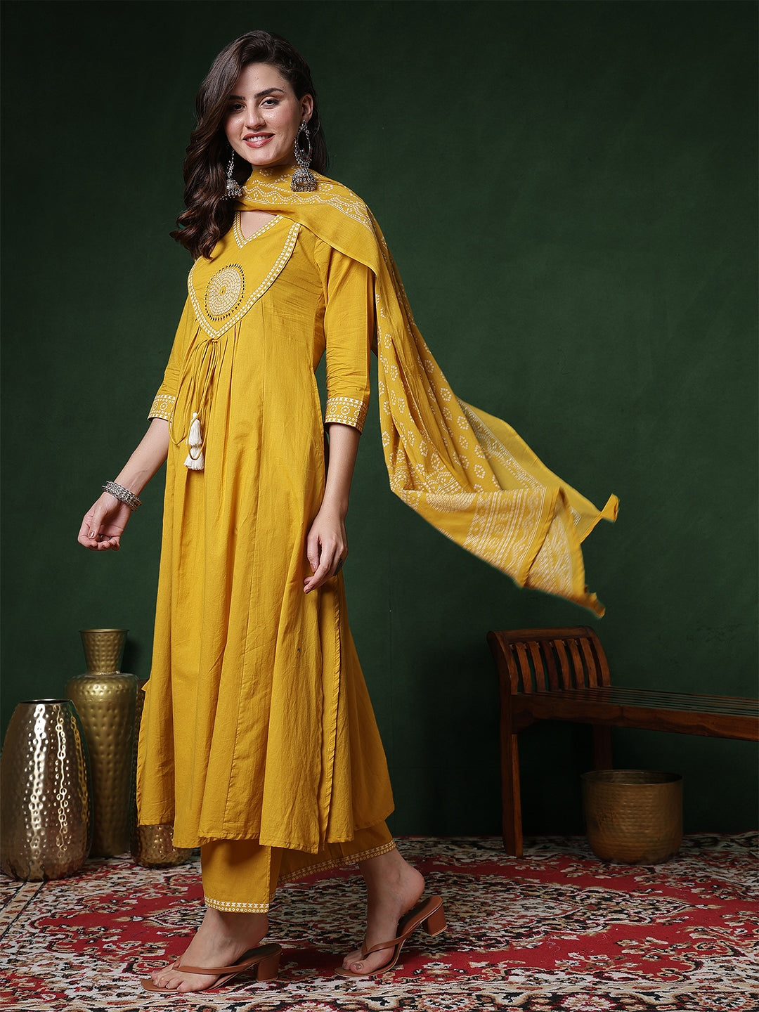 Rayon Calf Length Solid 3/4 Sleeves V-Neck Semi-Flared Kurta Suit Set With Dupatta (Preorder)