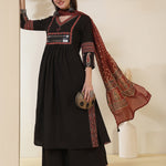 Rayon Calf Length Solid 3/4 Sleeves V-Neck Semi-Flared Kurta Suit Set With Dupatta (Preorder)