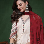 Cotton Flex Calf Length Solid 3/4 Sleeves V-Neck Straight Kurta Suit Set With Dupatta (Preorder)