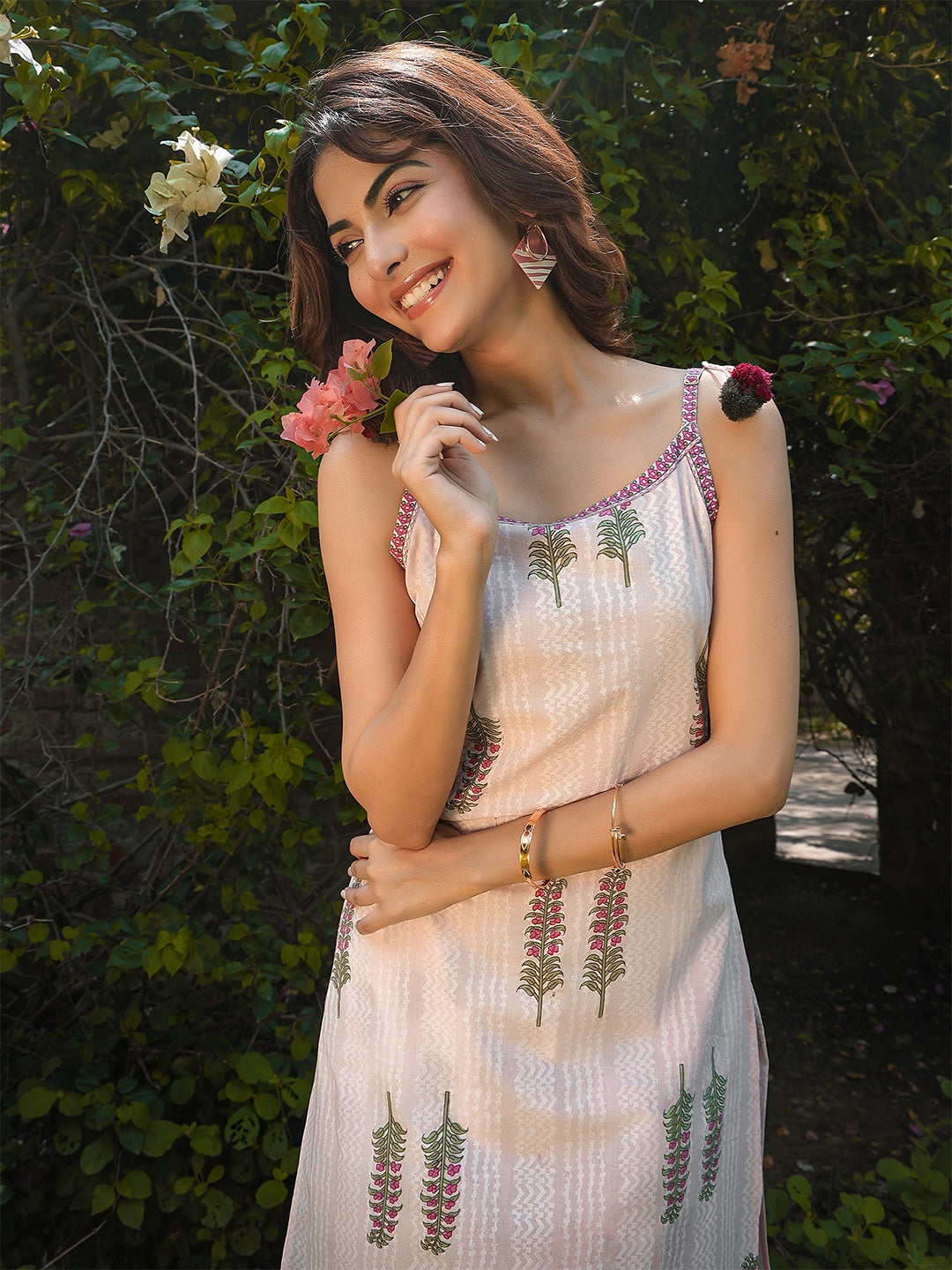Rayon Calf Length Printed Strappy Sleeve Round Neck Straight Kurta Bottom Set (Preorder)