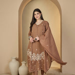 Cotton Calf Length Solid 3/4 Sleeves V-Neck A-Line Kurta Suit Set With Dupatta (Preorder)