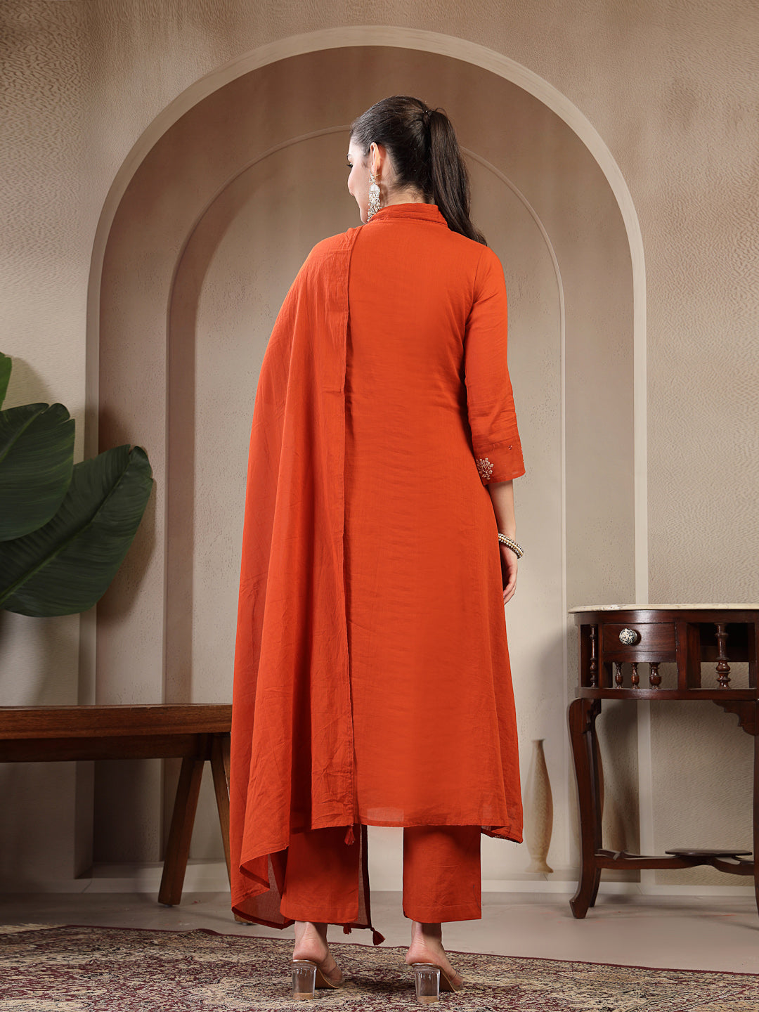 Cotton Calf Length Printed 3/4 Sleeve V Neck Straight Kurta Suit Set With Dupatta (Pre-Order)