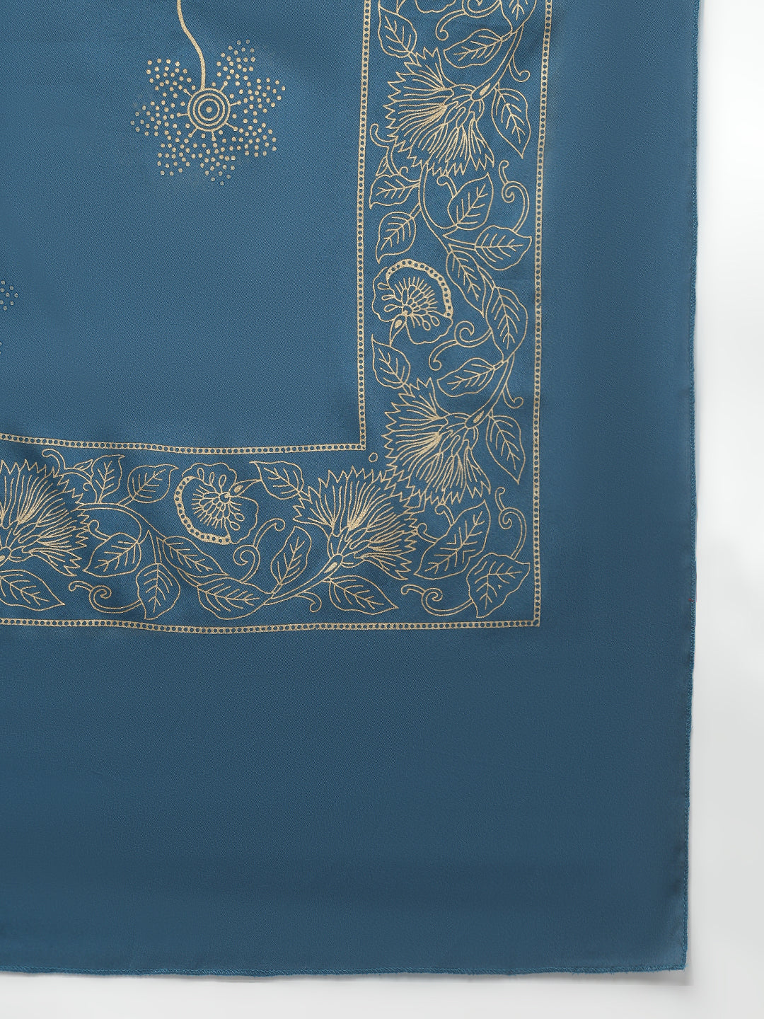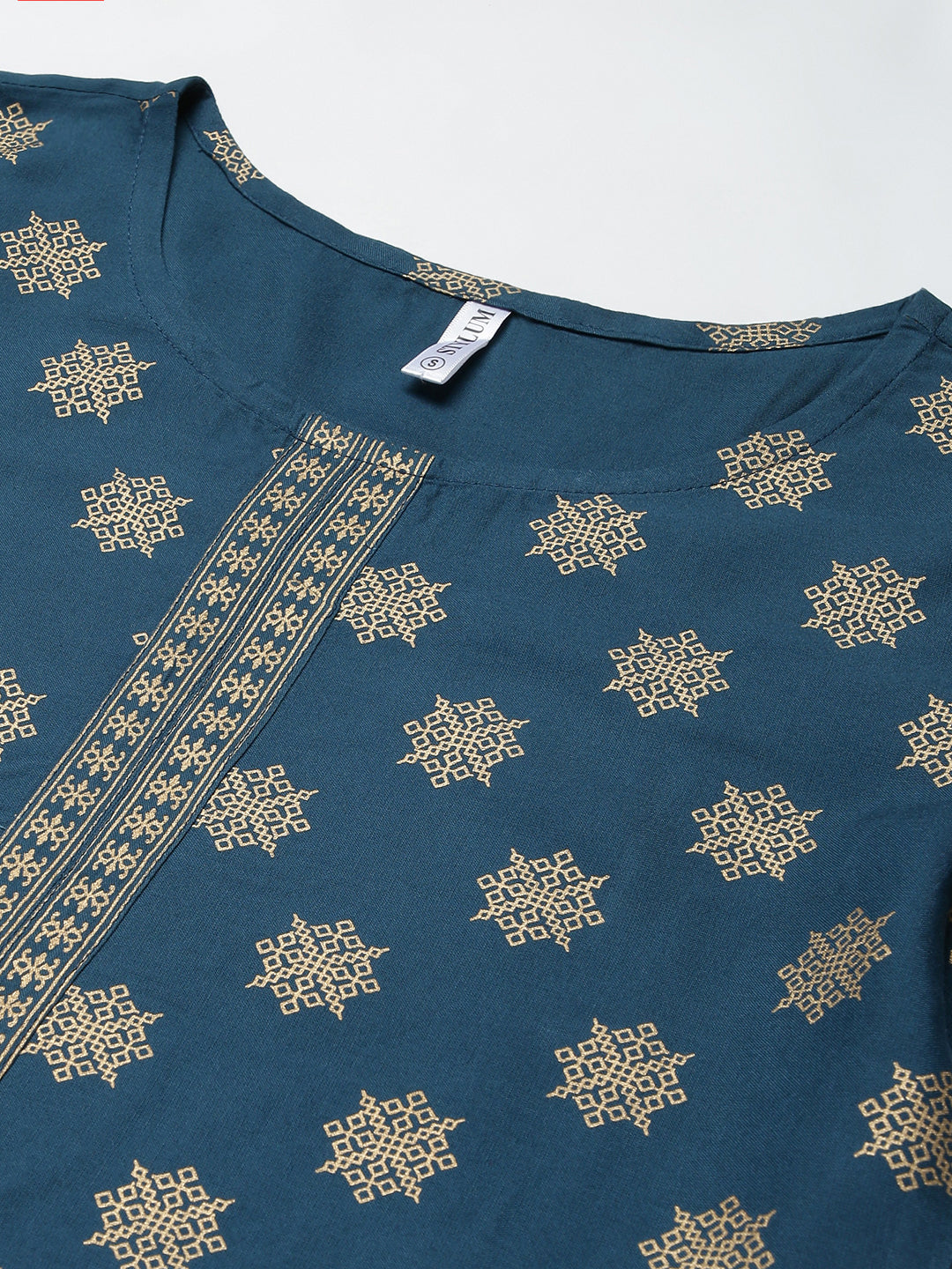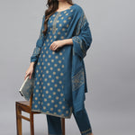 Women's Gold Printed Rayon Straight Kurta Pant Dupatta Set (Pre-Order)