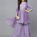Bandhej Printed & Embroidered Kurta Sharara Dupatta Set (Pre-Order)