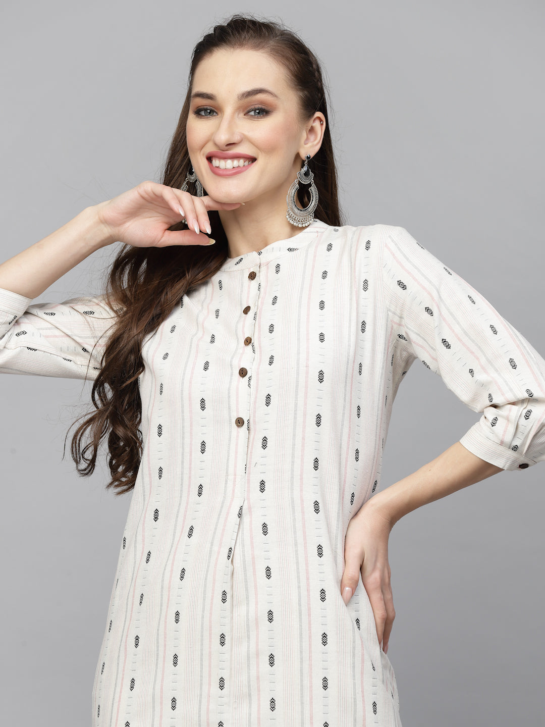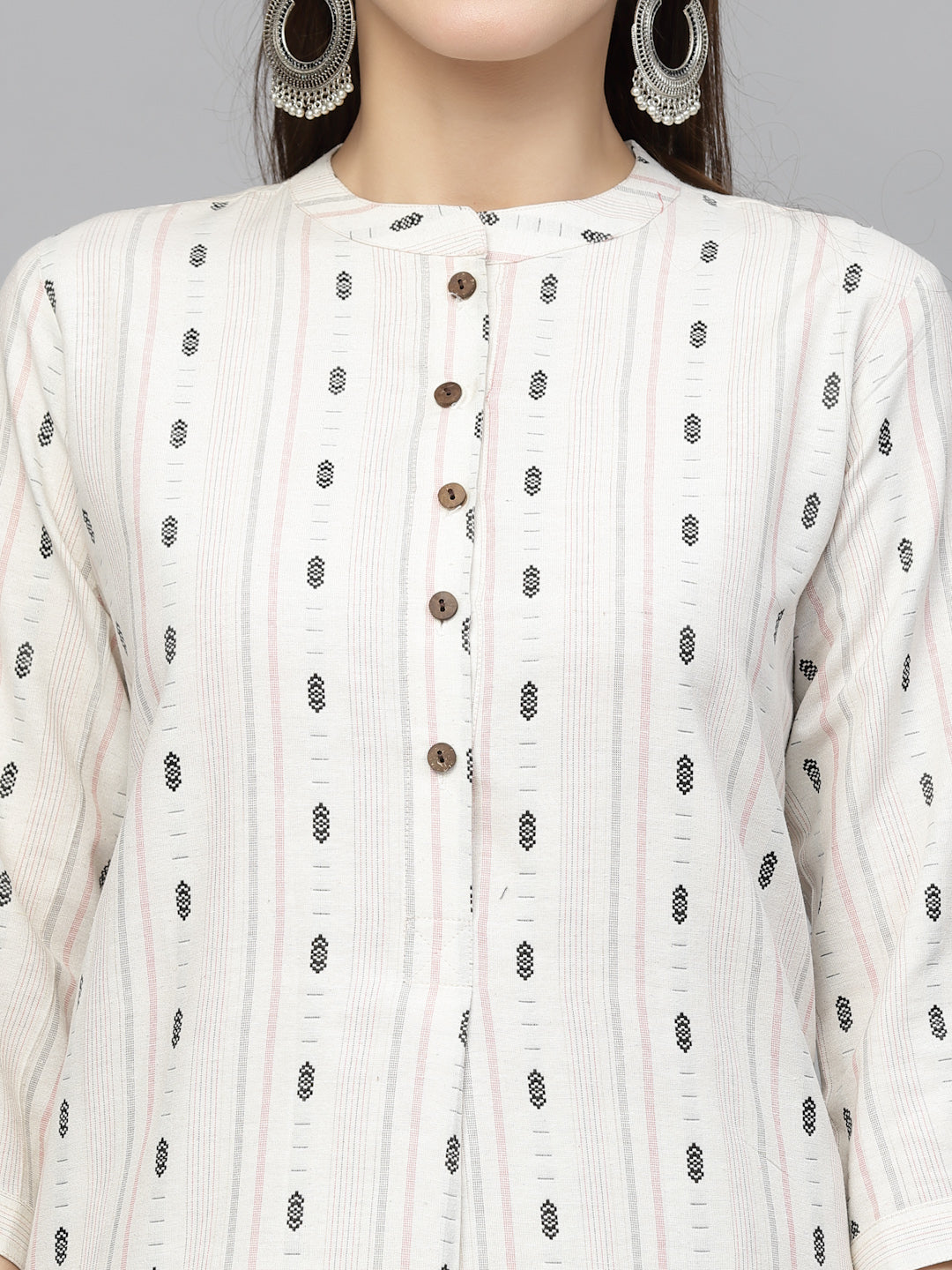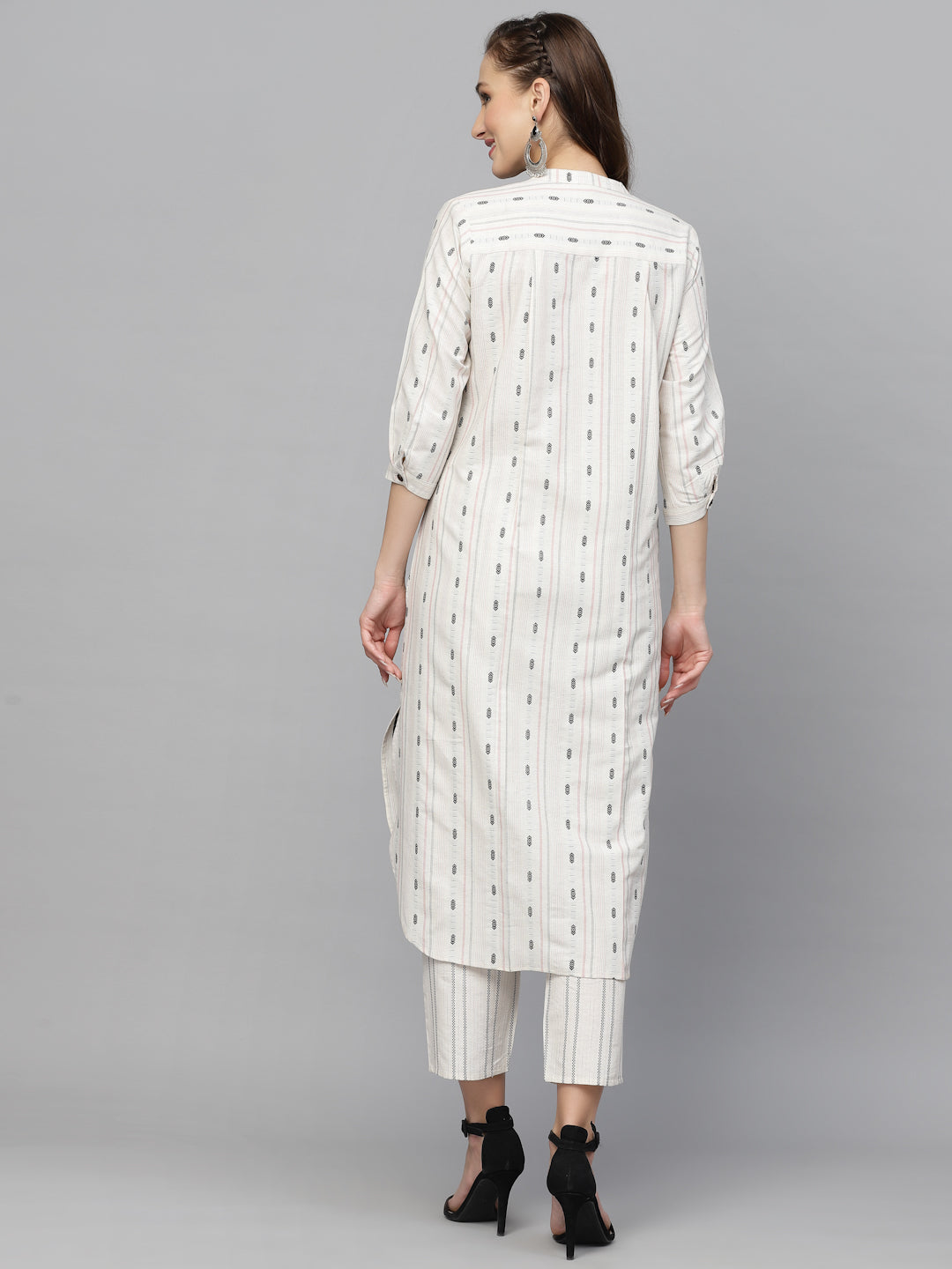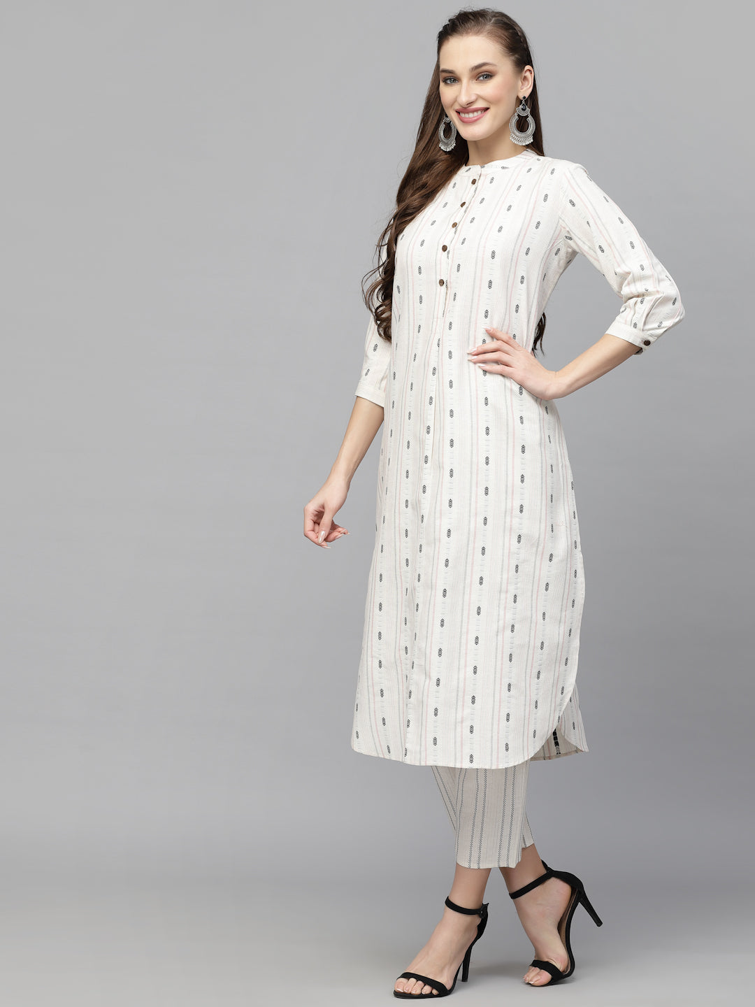 Woven Design Cotton Blend Kurta Pant Set (Pre-Order)