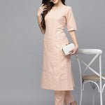 Self Woven Striped Cotton Blend Straight Kurta Pant Set (Pre-Order)