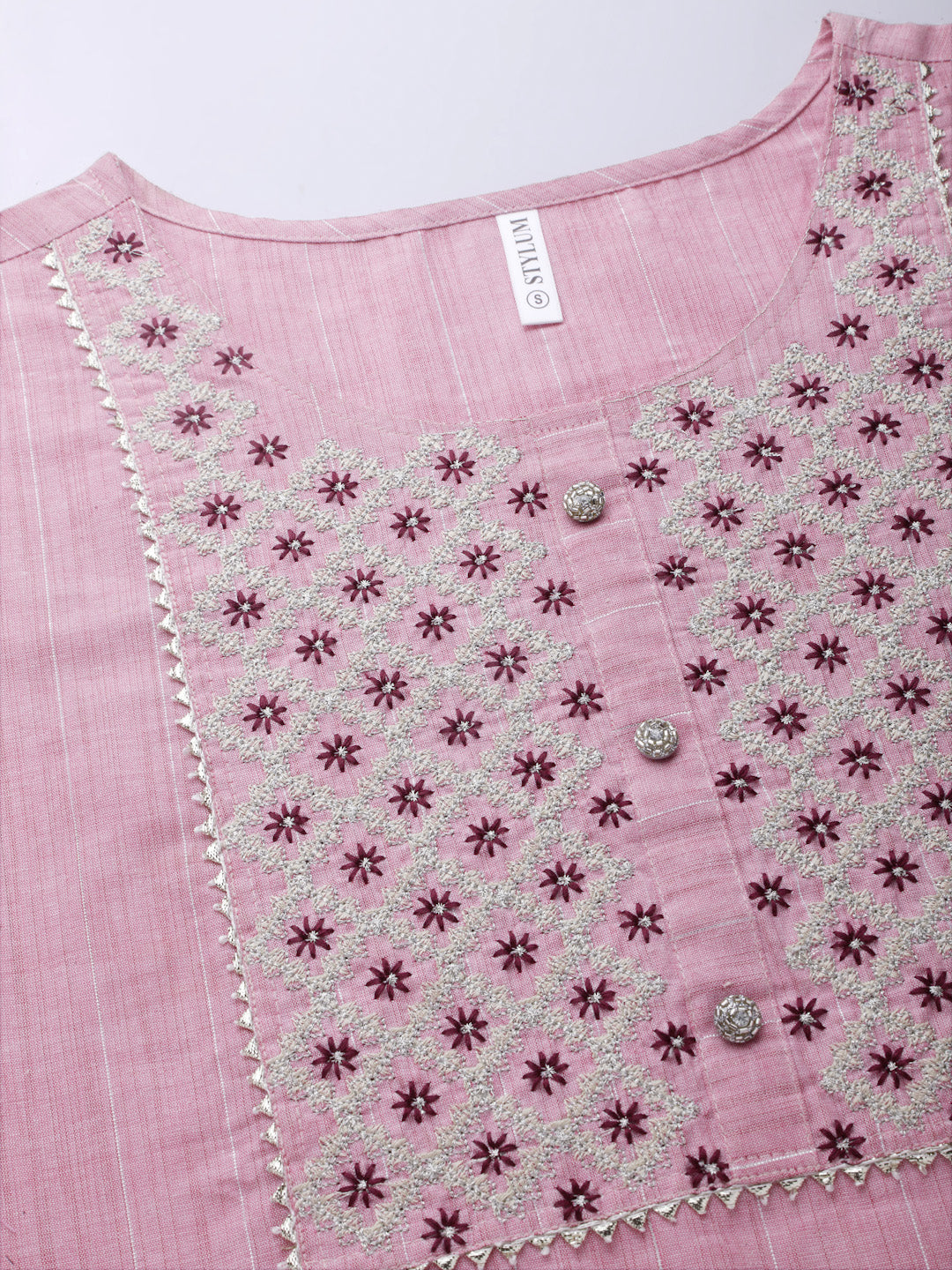 Woven Design & Embroidered Cotton Blend Straight Kurta Pant Set (Pre-Order)