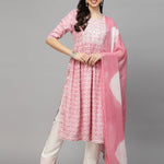 Printed Rayon Naira Cut Kurta Pant Dupatta Set (Pre-Order)