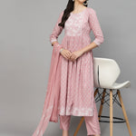 Printed Rayon Naira Cut Kurta Pant Dupatta Set (Pre-Order)