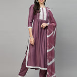 Solid Chinnon Naira Cut Kurta Pant Dupatta Set (Pre-Order)