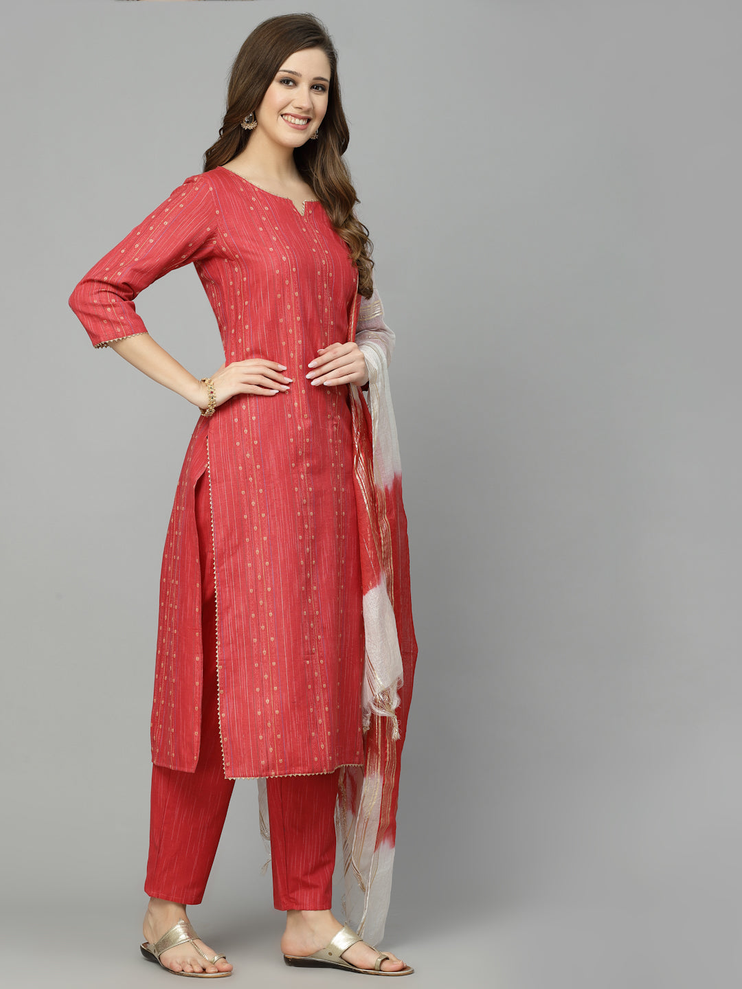 Woven Design Cotton Blend Straight Kurta Pant Dupatta Set (Pre-Order)