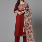 Embroidered Cotton Blend Kurta Pant Dupatta Set (Pre-Order)