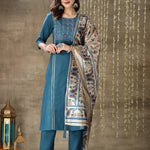 Embroidered Cotton Blend Straight Kurta Pant Dupatta Set (Pre-Order)