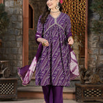 Bandhej Printed Rayon Naira Cut Kurta Pant Dupatta Set (Pre-Order)