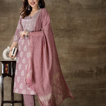 Printed & Embroidered Rayon Straight Kurta Pant Dupatta Set (Pre-Order)