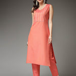 Woven Designed Cotton Blend Straight Kurta Pant Set (Pre-Order)