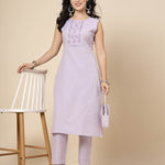 Embroidered Cotton Blend Straight Kurta Pant Set (Pre-Order)