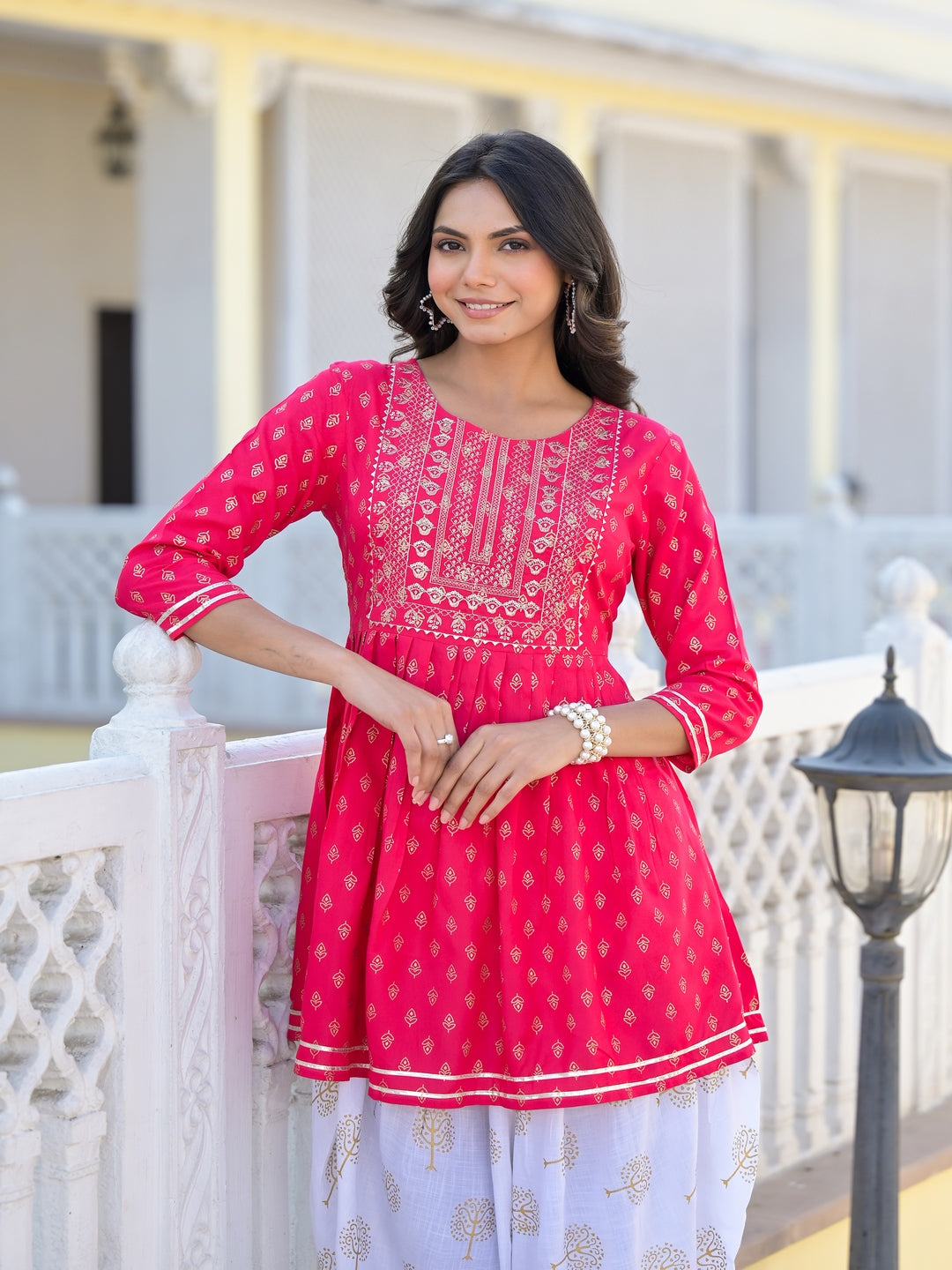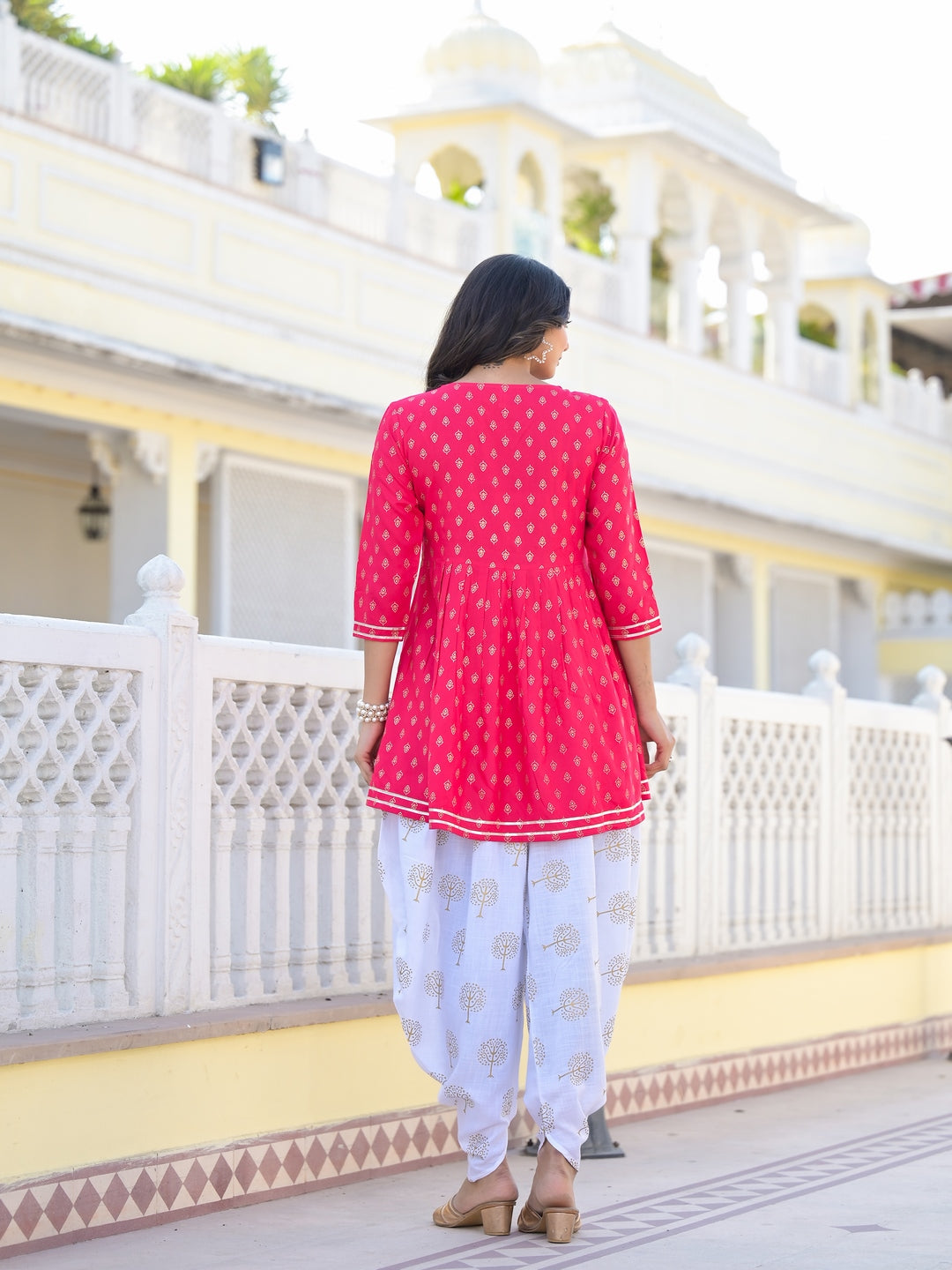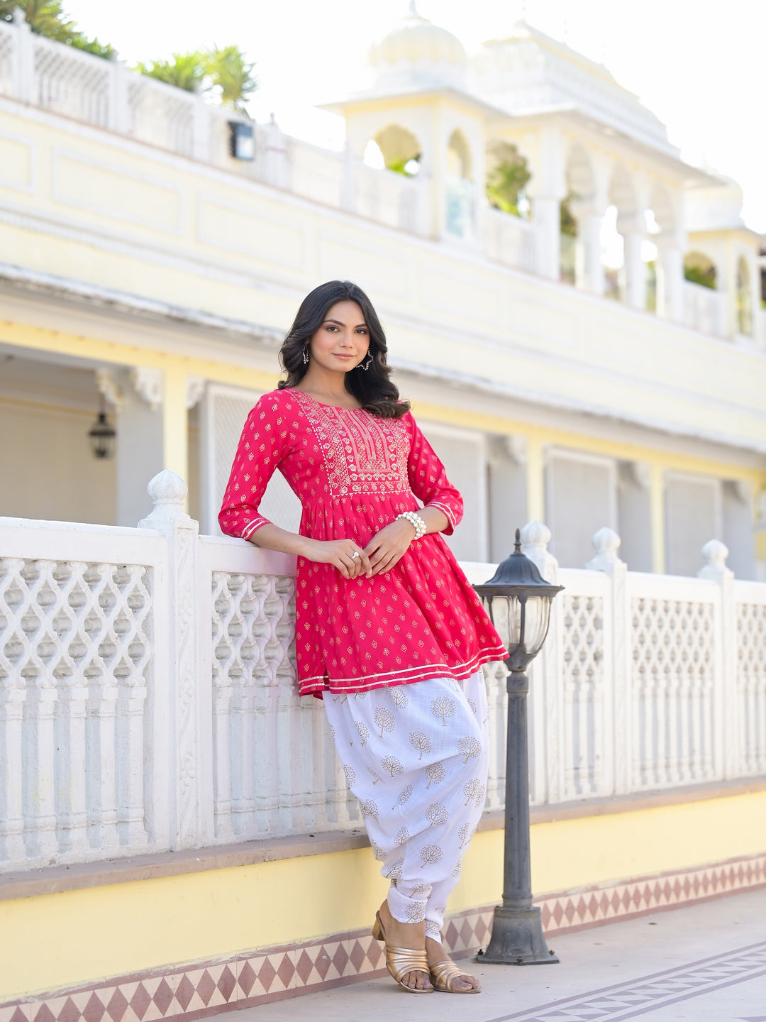 Printed & Embroidered Rayon Kurti with Dhoti Pant (Pre-Order)