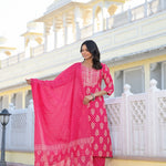 Printed & Embroidered Rayon Straight Kurta Pant Dupatta Set (Pre-Order)