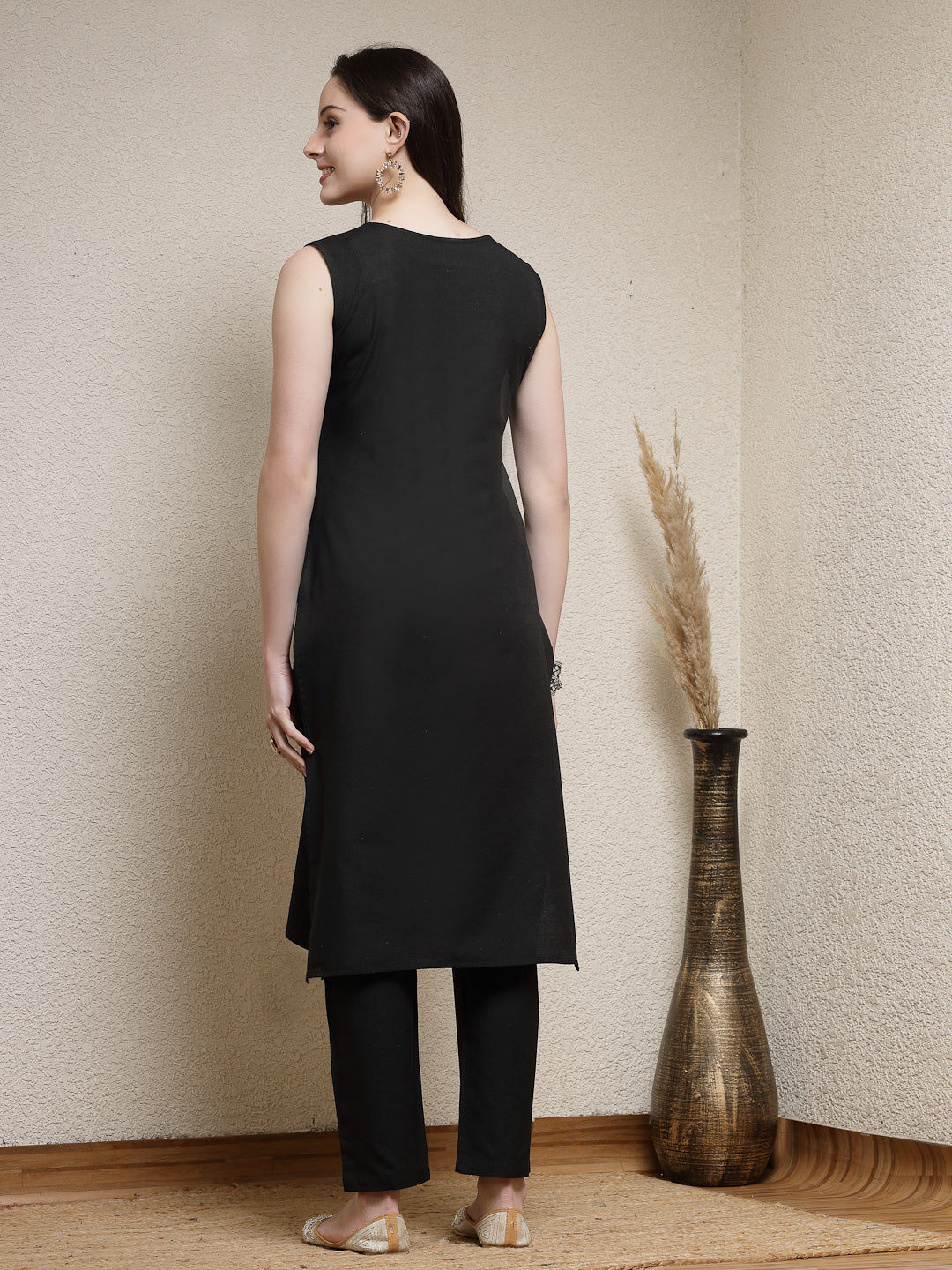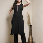Embroiderd Cotton Blend Straight Kurta Pant Set (Pre-Order)