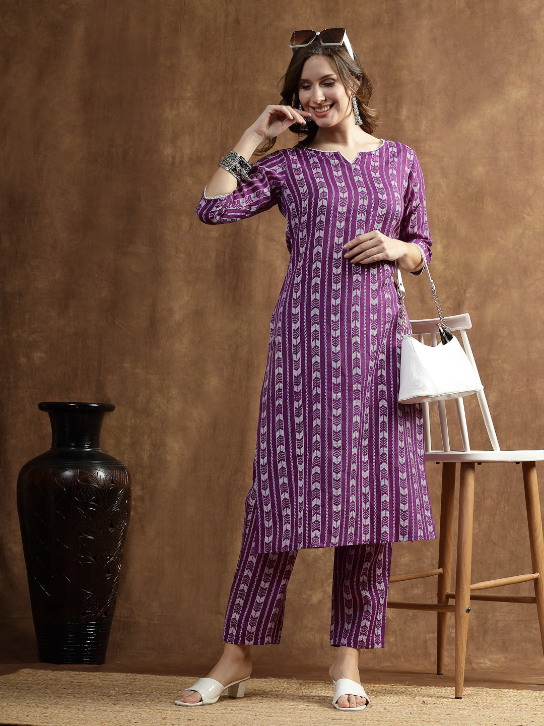Printed Cotton Blend Straight Kurta Pant Set (Pre-Order)