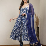 Floral Printed Rayon Anarkali Kurta Pant Dupatta Set (Pre-Order)