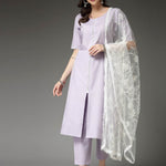 Solid Cotton Blend Straight Kurta Pant Dupatta Set (Pre-Order)