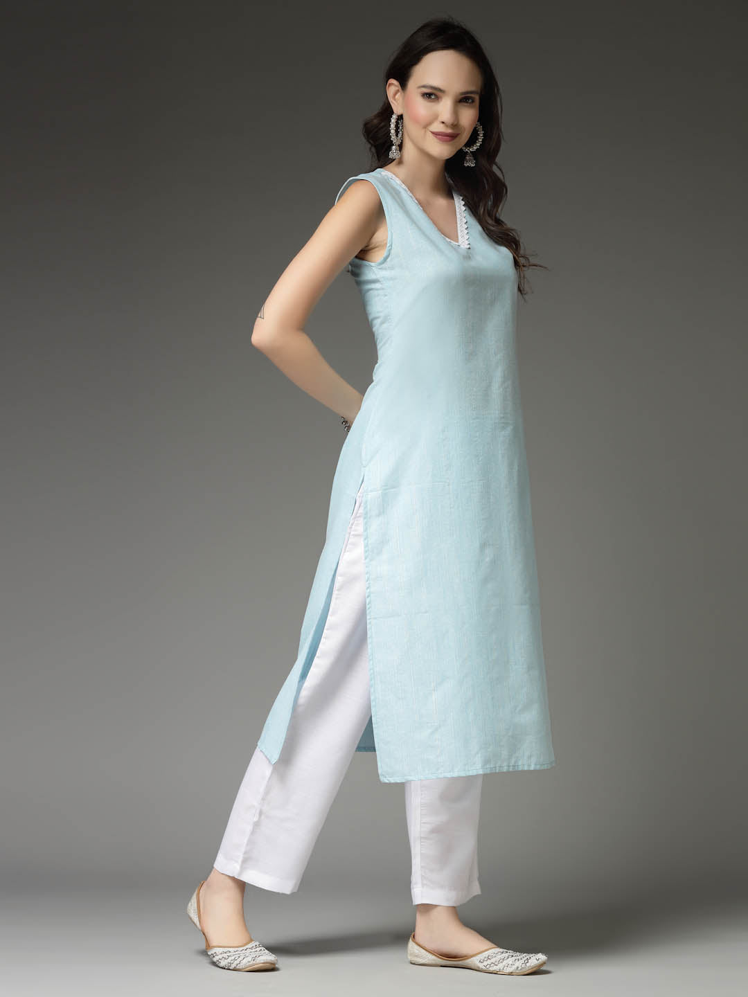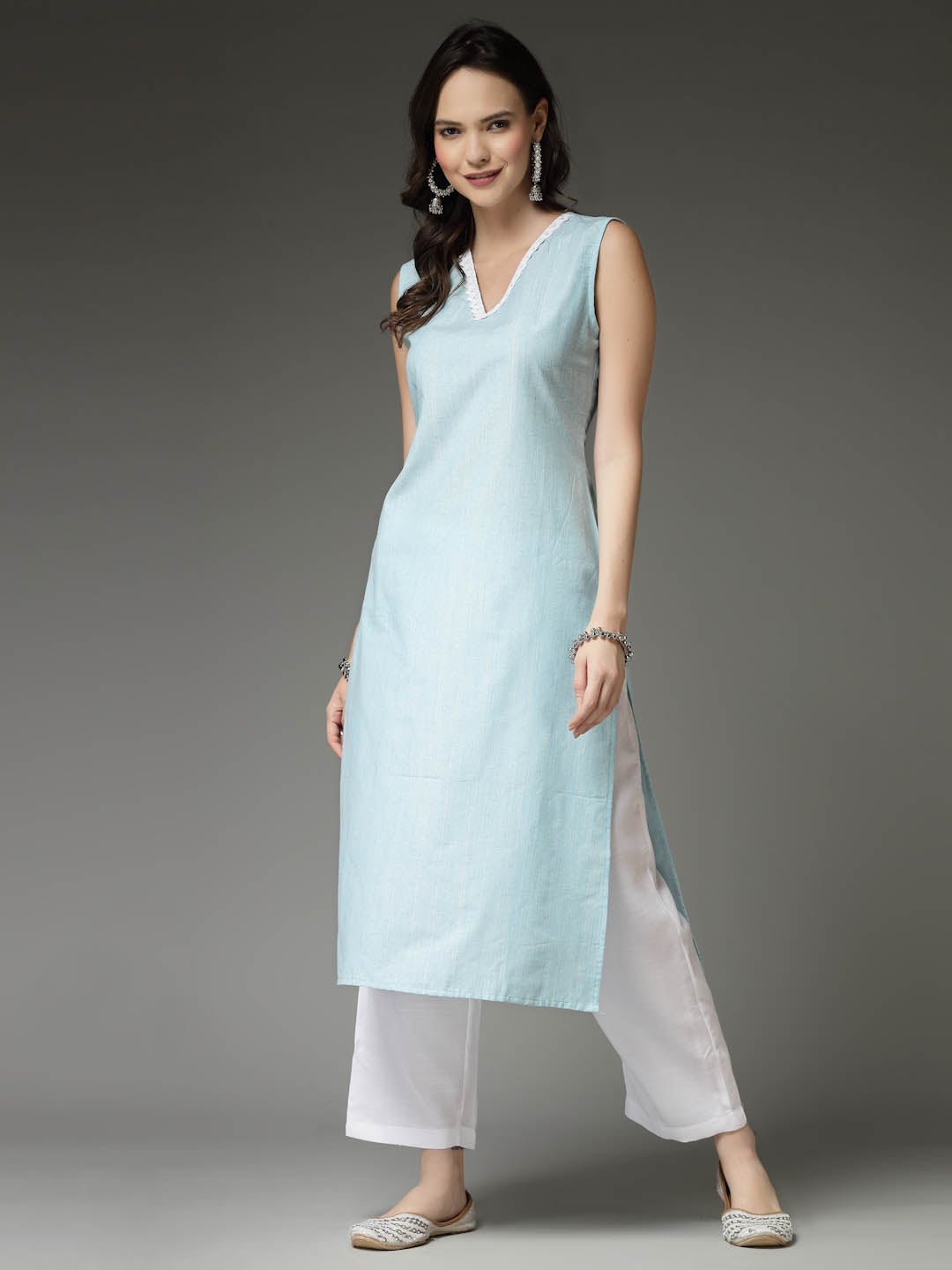 Solid Cotton Blend Straight Kurta Pant Set (Pre-Order)