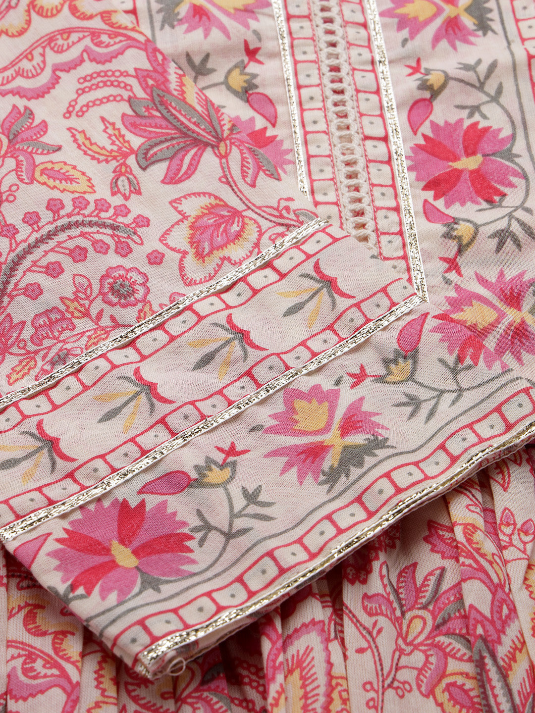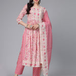 Floral Printed Cotton Naira Cut Kurta Pant Dupatta Set (Pre-Order)