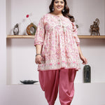 Plus Size Floral Printed Cotton Kurti with Dhoti Pant (Pre-Order)