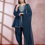 Embroidered & Embellished Rayon Pleated Kurti With Dhoti Pant & Dupatta (Pre-Order)