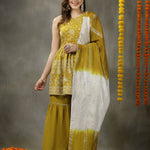 Floral Printed Rayon Pleated Kurta Sharara Dupatta Set (Pre-Order)