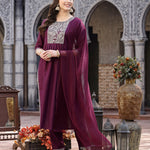 Solid & Embroidered Cotton Blend Naira Cut Kurta Pant Dupatta Set (Pre-Order)