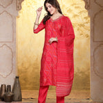 Bandhej Printed Muslin Straight Kurta Pant Dupatta Set (Pre-Order)