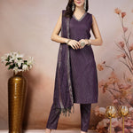 Woven Designed Cotton Blend Straight Kurta Pant Dupatta Set (Pre-Order)
