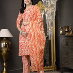 Rust Printed Cotton Straight Kurta Pant Dupatta (Pre-Order)
