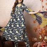 Floral Printed Cotton Pleated Kurta Pant Dupatta Set (Pre-Order)