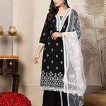Black Ethnic Printed Rayon A-Line Kurta Palazzo Dupatta Set (Pre-Order)