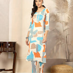 Multi Abstract Printed Poly Crepe Straight Kurta Pant Set (Pre-Order)