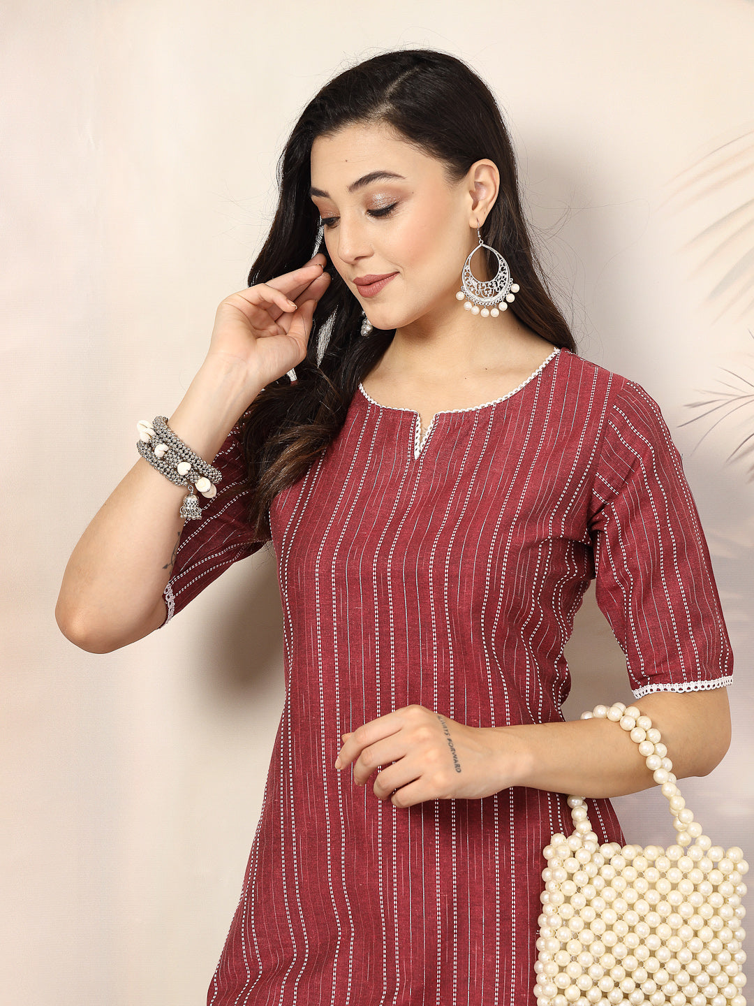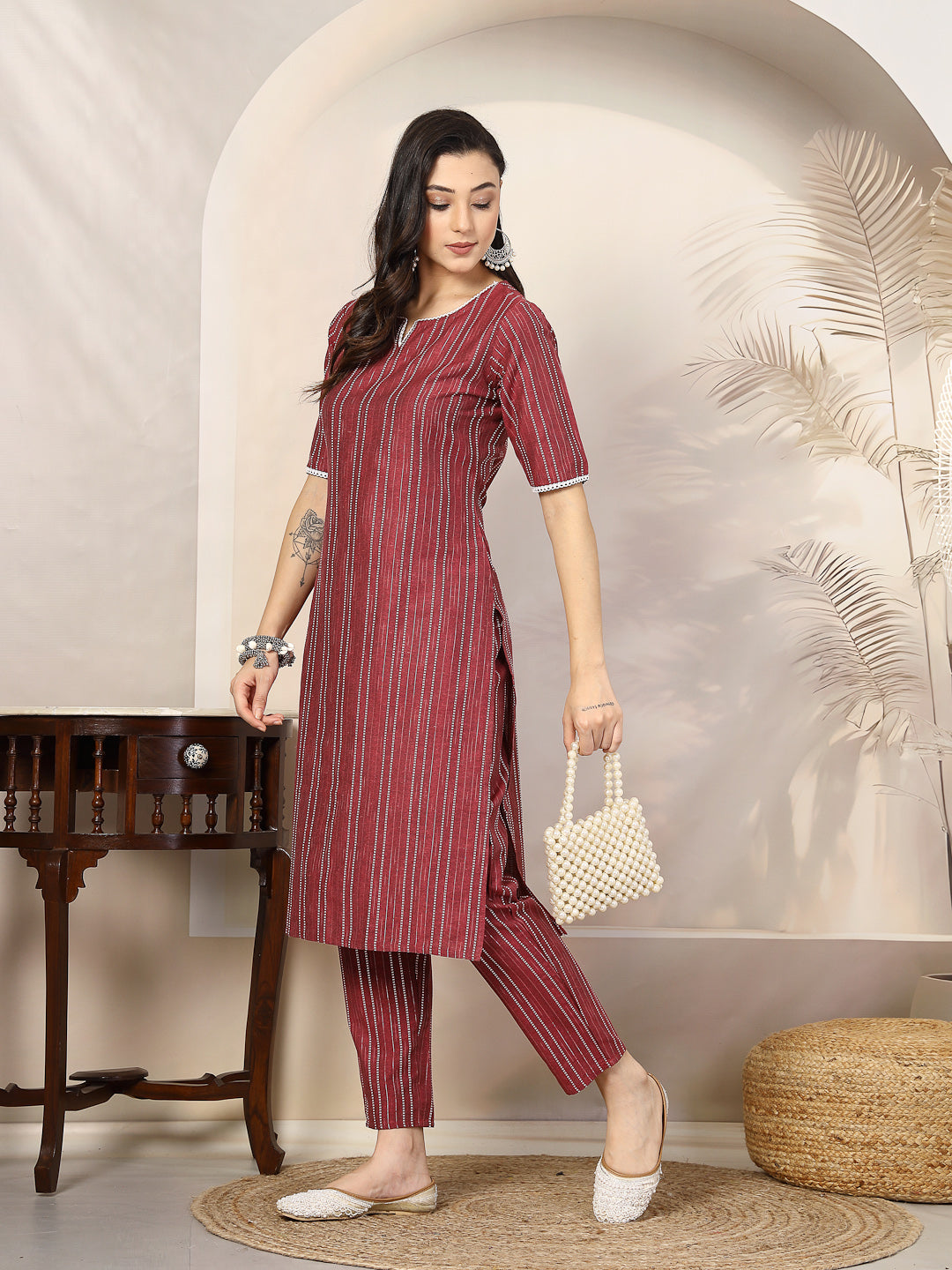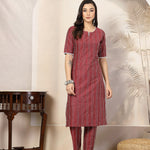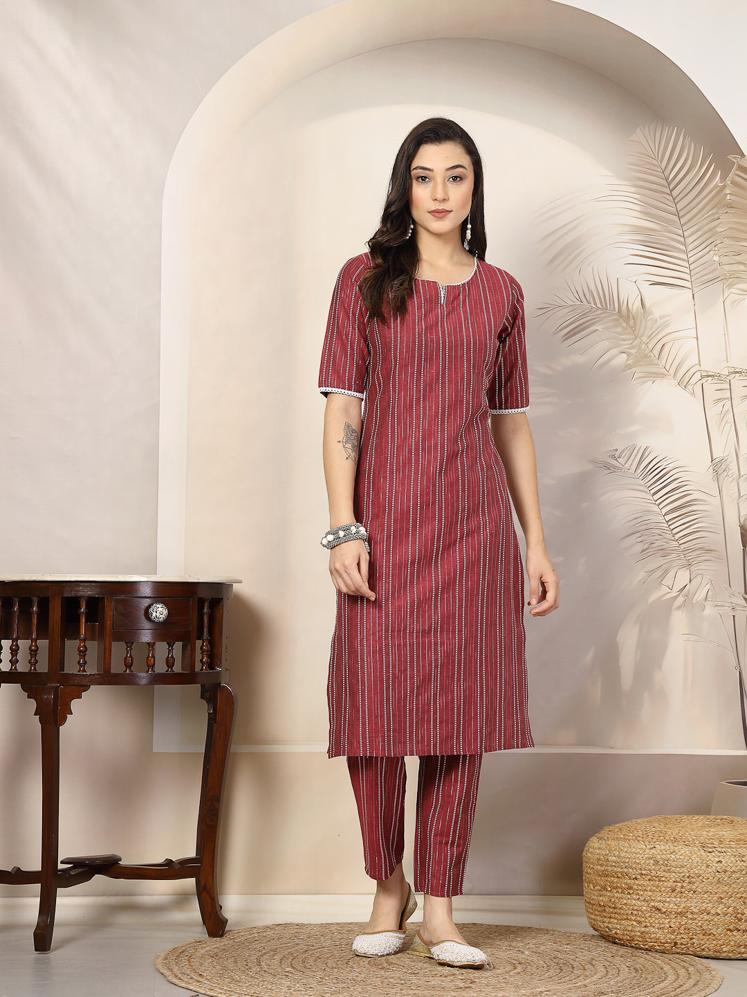 Self Woven Striped Cotton Blend Straight Kurta Pant Set (Pre-Order)
