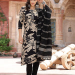 Black Tropical Printed Muslin Straight Silk Kurta Pant Dupatta Set (Pre-Order)